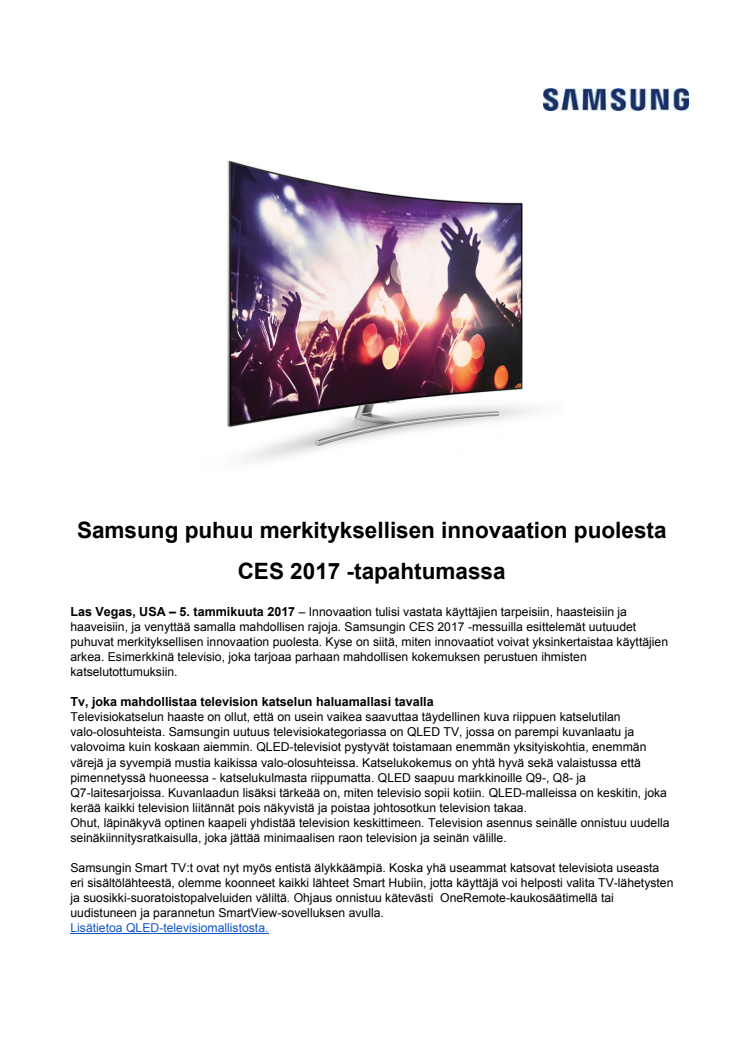 Samsung puhuu merkityksellisen innovaation puolesta CES 2017 -tapahtumassa